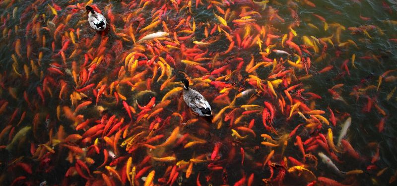 2、忌深色系:深色系的九鱼图阴气太重,虽然有驱邪化煞的功效,但是对于家宅还是不利的,所以我们一定要避免画中全是深色系的鱼,而是采取红黑相间的画法。